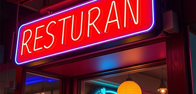 화려한 네온 사인으로 밤에도 눈에 띄는 레스토랑 간판 시공 사례입니다.